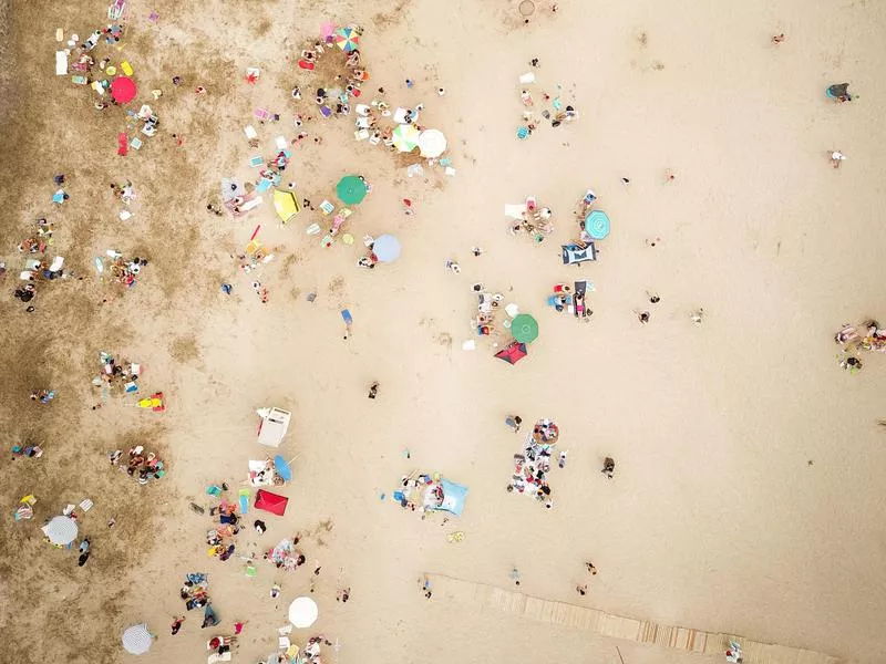 The beach from above in the holiday resort of Icmeler pops with color. den-belitsky / Getty Images