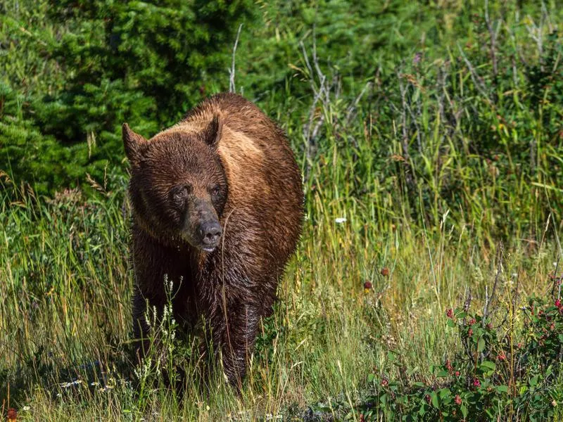 Grizzly bears, normally only found in mountainous regions, are found here in the plains, often right alongside the road.