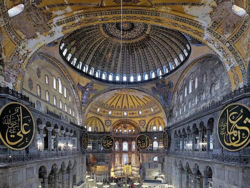 The Hagia Sophia is one of the most important and historic structures in the art world. It was the largest church constructed by the Roman Empire in Istanbul and has had three iterations throughout the centuries built on the same spot. The current structure was completed in 537 AD.