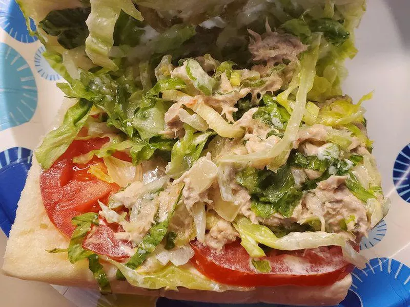 Key Ingredients: Tuna salad, cucumber, lettuce and tomato on a French bread roll (or in a lettuce wrap for the Unwich variation)