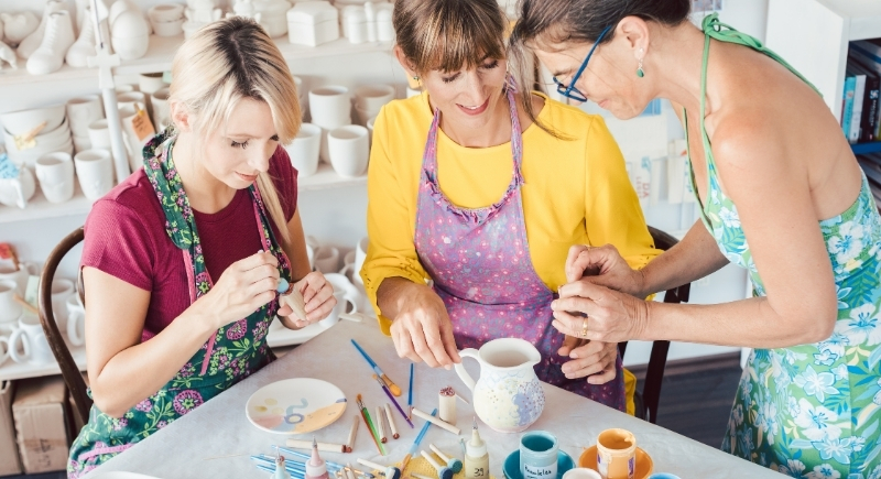 Occasionally, hotels invite artists to work directly inside the boutique for short demonstrations. Guests walking through the shop might see a painter working on a canvas or a ceramic artist shaping clay. The presence of the artist changes the space's atmosphere. Instead of simply displaying finished works, the boutique becomes a brief active studio where visitors can watch the creative process.