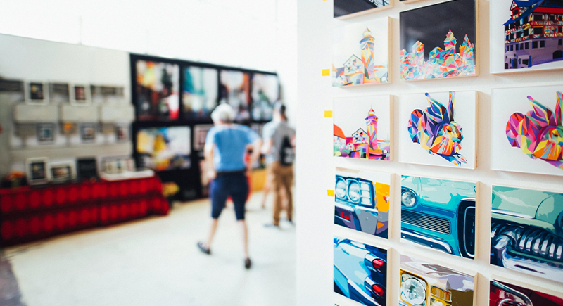 Some hotels refresh their boutique displays several times a year by rotating in new artists. This approach keeps the space visually different each time a guest visits and allows hotels to introduce multiple local creators throughout the year instead of relying on a single permanent collection.