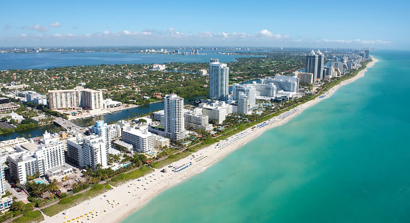 December is dry, sunny and swarmed, mostly because of Art Basel. The fair draws out satellite exhibits in Wynwood and the Design District, and hotel bars double as nightlife venues for the week. The City of Miami Beach officially describes the event period as bringing “severe traffic delays” and advises visitors to use ferries and water transports.